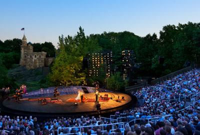 There are only 1872 seats in the Delacorte Theater in Central Park, and most tickets are given away free the day of the performance. Unfortunately, there are usually several hundreds more people who wait in vain. Sharing “how I got my ticket” stories are great conversation starters while waiting for the show to begin. “I feel so guilty,” the man in front of me wailed, “I was the cut-off and the people behind me in line got nothing.” (Please note, he did not feel guilty enough to give them his tickets.)