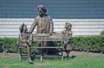 The annual sale was held in the Redding Community Center, located off Route 107 in Redding, Connecticut (the library is located at 439 Redding Road). This book sale run by the Friends of the Mark Twain Library is so well established as a Labor Day Weekend event, that publicity is not a factor. There were two main rooms organized for the sale; the top floor houses childrens’ books and media, the bottom floor holds all other genres. There were long tables clearly labeled with genre signs. An army of volunteers wearing green aprons for easy identification busily restocked tables, placing titles sideways for easy identification. Since I attended the on “bag day”, there were piles of doubled brown-paper bags ready for shoppers; checkout tables held staffers willing to help carry books out into the parking lot. The high degree of organization for this sale some 72 hours after the first shopper entered the building was a testament to work the volunteers must have put in preparing the sale.Only the most organized systems could have stood up to the number of shoppers over the weekend.