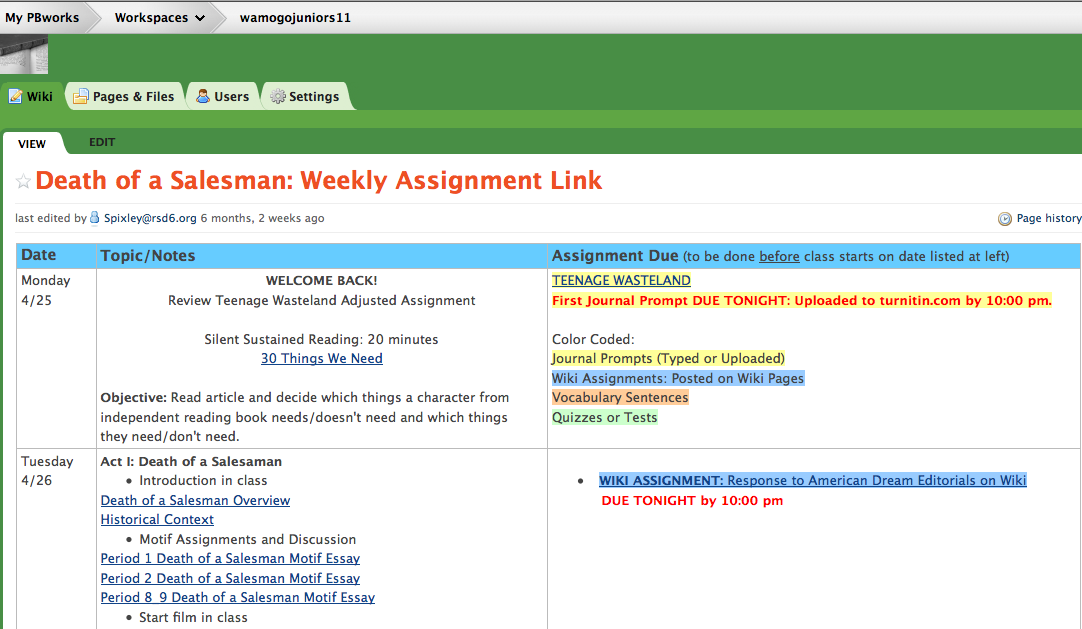 The wiki does hold the student more accountable for participation. Of course, this participation means that they actually have to go to the wiki.