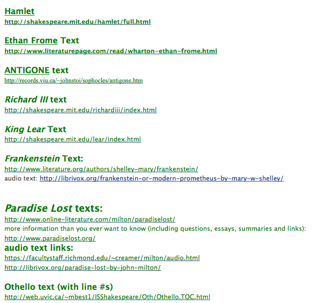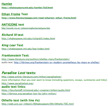 Advanced Placement English Literature digital texts