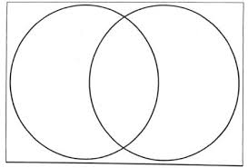 Consider next, the popular Venn Diagram used for compare and contrast exercises. Of all the organizers, this is one that may require students to have little practice to get perfect, however, is the symmetry of shape what teachers want students to notice about the Venn Diagram? That there are two perfect circles overlapping with a shared oval in the center? The problem with two perfect circles of equal size and shape is the implication that when an object or topic is compared and contrasted, the information is also equitable. On a prepared Venn Diagram, there is exactly the same amount of space on each side for the purpose of contrast, but there is a smaller, cramped center for comparable attributes. Perhaps a student can practice some freehand circle creation, find out how to use a protractor, or use some object -a water bottle? cup? paper plate?-to trace a circle. What students should not fret about is how to draw two perfect circles, because the Venn Diagram functions as an organizer even with lopsided ellipses.
