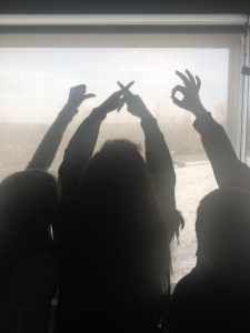 Understanding Greek and Latin roots is critical to decoding vocabulary, so when the freshman had a long list of roots to memorize, we tried a kinesthetic approach. The students used their fingers to spell out Greek roots: ant (against), tech (skill), exo (outside).  They twisted their bodies into letters and spread out against the wall spelling out xen (foreign), phob (fear). They also scored very well on the quizzes as a result!