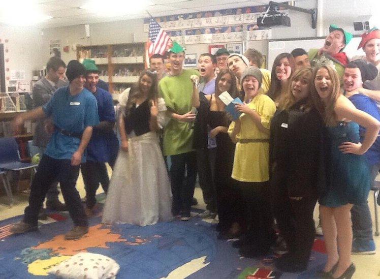 Their “dress rehearsal” was a disaster, but, as the adage says, “The show must go on!” and once they arrived at the elementary schools, the students were anxious to do well. They naturally changed their staging moving from gym floor to library floor, the Evil Queen tossed her hair with anger, and the Prince strode onto the stage with more confidence. The dwarves were a source of comic relief, intentionally or not. I watched the holiday miracle of 2013 repeated three times that day. The students in drama class at each school were applauded, with congratulatory e-mails from the principals that offered praise.