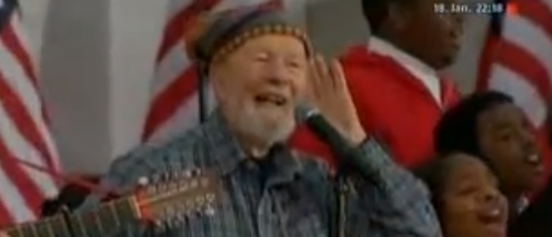 On that day Pete and myself, and generations of young and old Americans — all colors, religious beliefs — I realized that sometimes things that come from the outside, they make their way in, to become a part of the beating heart of the nation. On that day, when we sung that song, Americans — young and old, black and white, of all religious and political beliefs — were united, for a brief moment, by Woody’s poetry.